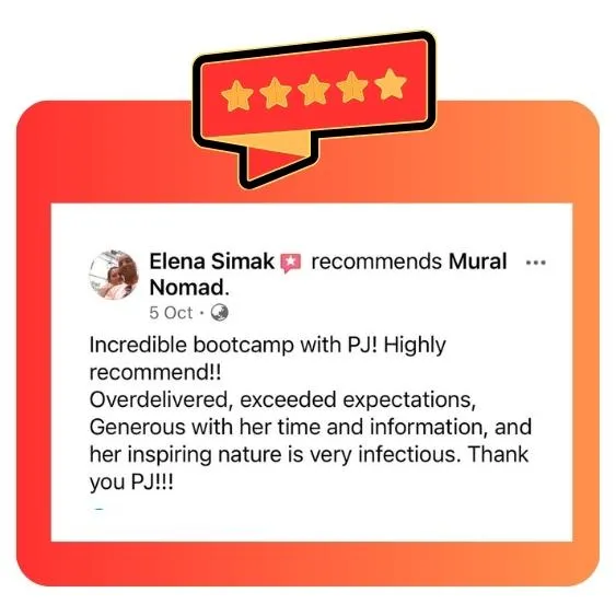 Back in 2021, I left the corporate world and kickstarted my mural business, building a brand that gave me incredible financial freedom and a dream lifestyle. Spending my days painting while providing value to my clients is my perfect kind of day. Now, I've stepped into mentoring passionate creatives like you in feeling the same.